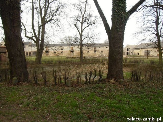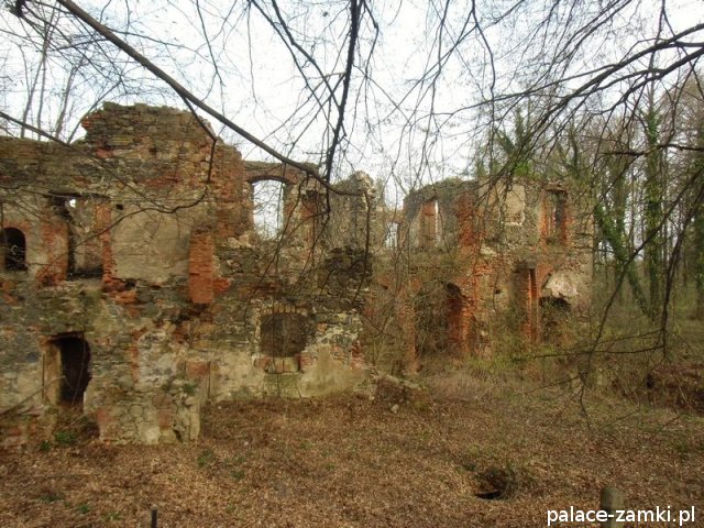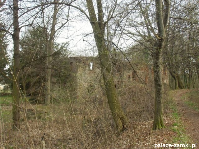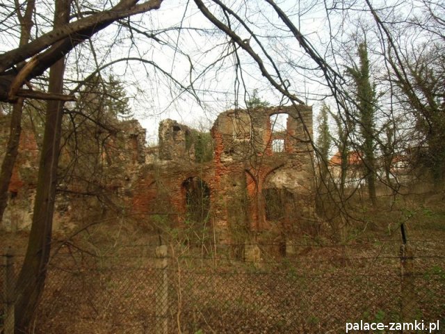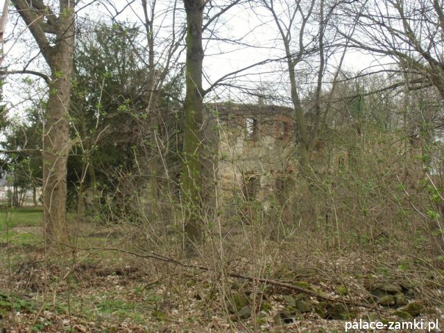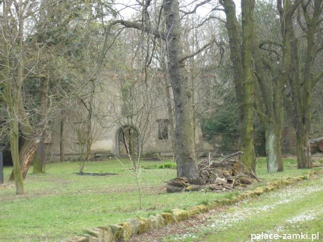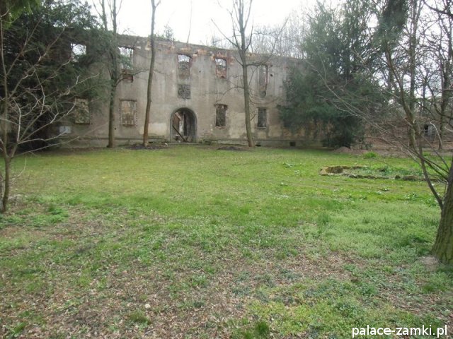 Pierwotny, renesansowy dwór obronny otoczony fosą, został wzniesiony pod koniec XVI w. przez ówczesnego właściciela von Gersdorfa na miejscu dawnego grodziska. Następnie w XVIII w. przebudowano go na barokowy pałac, który w XIX w. otrzymał swój neorenesansowy wygląd. W 1830 r. pałac przechodzi na własność Manfreda von Richthofena, podróżnika, kolekcjonera, który zgromadził w pałacu dużą kolekcję dzieł sztuki i zbiory etnograficzne z całego świata. Zasadził on w przypałacowym parku i oranżeriach dużą ilość egzotycznych roślin, a dla swojej żony (szwedzkiej aktorki) wybudował w parku basen kąpielowy. Pod koniec II wojny światowej gościł tu przez tydzień gubernator Hans Frank, przywożąc ze sobą kolekcję dzieł sztuki zrabowaną na Wawelu i muzeum Czartoryskich. W 1945 roku pałac spłonął i pozostaje w ruinie.
