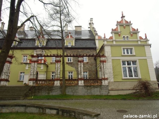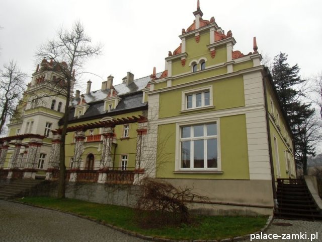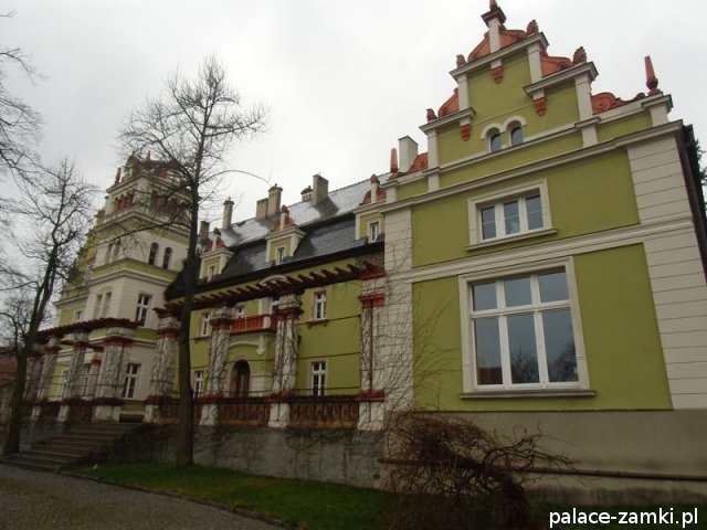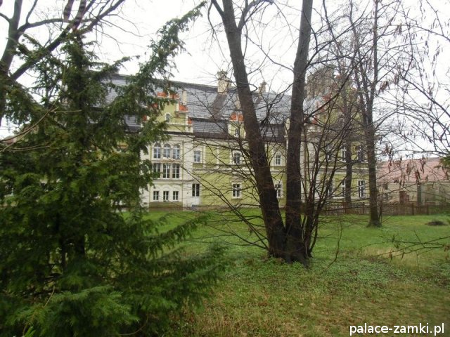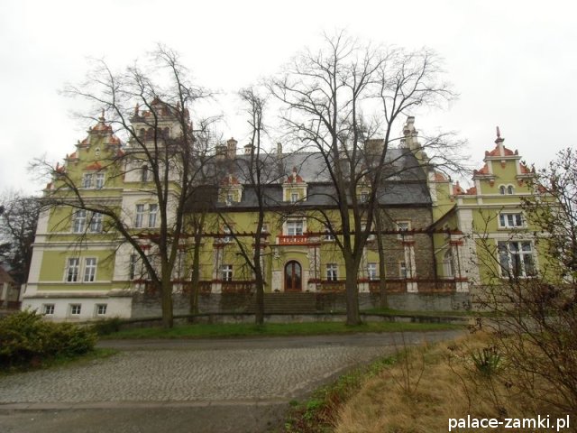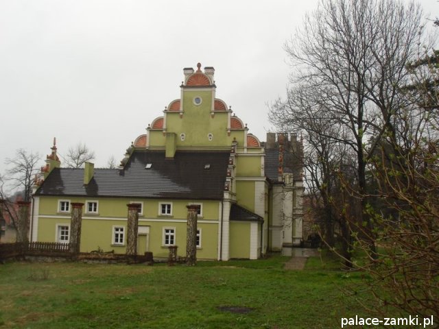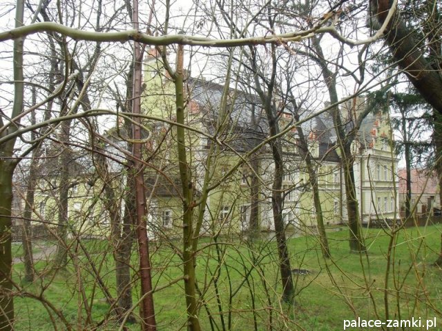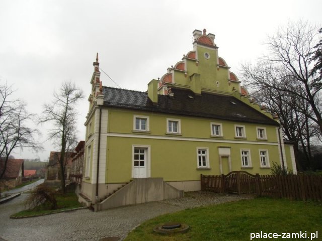 Wzniesiony w 1577r., pierwotnie jako dwór renesansowy. Pałac kilkakrotnie przechodził z rąk do rąk, a nad jednym z wejść od strony parku, można zauważyć herb dwóch z nich. W 1622 r. majątek kupuje rodzina von Schweinichen. Rozbudowa pałacu odbyła się w 1873 r., został powiększony o część zachodnią, a następnie gruntownie przebudowany w 1879 r. Kolejny remont został przeprowadzony w 1981 r. Pałac został powiększony od strony ogrodu, a od strony wschodniej dodano czworoboczną przybudówkę z wieżą. Skrzydło zachodnie, dwupiętrowe, pokryte dwuspadowymi dachami. Na pobliskim wzgórzu (Radogost) zachowała się również wieża widokowa z 1893, zwieńczona otwartą galerią.