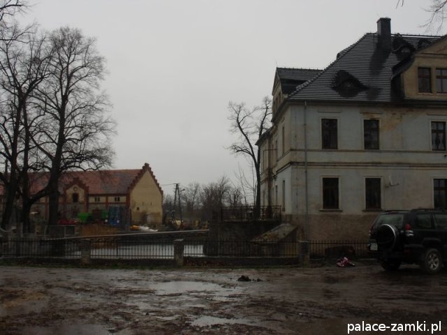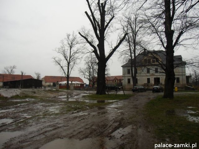 Renesansowy dwór zbudowany przez rodzinę Reibnitzów około połowy XVI w., w czasach późniejszych wielokrotnie przebudowywany: 1770 r., II połowa XIX w., 1960 r. Budynek murowany z kamienia i cegły, tynkowany, wzniesiony na planie prostokąta, podpiwniczony, dwukondygnacjowy, nakryty dachem czterospadowym z facjatami i powiekami, wykonanym z dachówki. Fasada (elewacja zachodnia) sześcioosiowa, z asymetrycznie umieszczonym głównym wejściem. Układ osi zapewne został zmieniony, zachowane zwieńczenie renesansowego portalu z ośmioma kartuszami herbowymi. Przed wejściem kamienny most z końca XIX w., przerzucony nad fosą otaczającą dwór. Elewacje w znacznym stopniu zostały uproszczone, ale zachowały się gzymsy: między piętrami i wieńczący, obramowania części otworów okiennych i proste nadokienniki. W narożnikach budynku znajdują się pozostałości szkarp. Centralnie usytuowane facjaty zamknięte są trójkątnymi przyczółkami. W elewacji południowej niewielki kwadratowy ganek ze schodami od wschodu i zachodu. Układ wnętrz trzytraktowy, z sienią i klatką schodową na osi. W części pomieszczeń przyziemia zachowane sklepienia kolebkowe.
