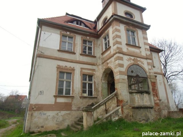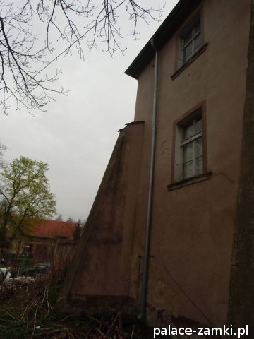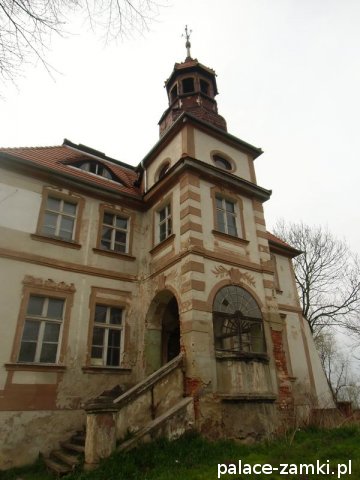 Pałac, zbudowany z cegły i kamienia na planie prostokąta, nie jest może wielki, ale ma bardzo ładną frontową pięcioosiową elewację, na której znajduje się zegar słoneczny. Kondygnacje są wyraźnie oddzielone gzymsem. Również od frontu znajduje się czworoboczna wieża, pod która jest główne wejście do pałacu. Nad samymi drzwiami pod wieżą umieszczono herby dawnych właścicieli. Wejść do środka niestety nie można. Boczne i tylne elewacje nie są już tak okazałe, ale warto obejść pałac dookoła by zobaczyć masywne podpory ściany bocznej od strony stawu. Sam staw jest mocno zaniedbany, jak i cały park pałacowy.