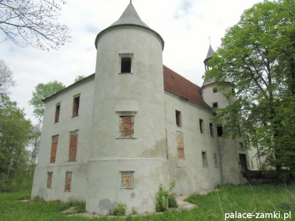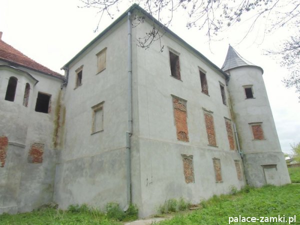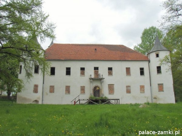 Styl obecnego pałacu wskazuje, że powstawał etapowo około 1530- 1630 roku wokół wewnętrznego dziedzińca. Powstał w ten sposób dwór wodny otoczony fosą. Najstarszym wydaje się być skrzydło południowe flankowane alkierzami i zawierające centralnie usytuowaną wieżę bramną. W roku 1583 dwór przebudowany został przez Georga von Kottwitz młodszego. Powstały wówczas malowane renesansowe stropy, w tym jeden z datą 1583 oraz heraldyczne malowidła ścienne z herbami spokrewnionych rodzin. W latach dwudziestych XVII w. zbudowano najnowsze skrzydło zachodnie z wielka salą na piętrze. Wówczas powstał też wystrój elewacji utrwalony na rycinie z poł. XVIII w. Elewacje przeprute były rzędami okien. Ściany szczytowe elewacji bocznych oraz połacie dwuspadowych dachów ozdobiono dekoracyjnymi szczytami. W 1722 roku pałac spłonął i został odbudowany nie tracąc swego dawnego stylistycznego charakteru. Bryłę pałacu przekształcono około połowy XVIII w. Po 1759 roku powstały: portal balkonowy z herbami Carla Sigismunda von Gellhorn i jego żony, poprzedzany schodami oraz taras i schody do ogrodu przy skrzydle zachodnim. W roku 1905 nastąpiła przebudowa i renowacja pałacu. Przeprowadzono tez konserwację odkrytych stropów i malowideł ściennych. Istniał wówczas jeszcze piaskowy portal z roku 1584. Kolejny remont pałacu przeprowadzono w roku 1933. Prace zabezpieczające przeprowadzono w latach 1983- 1990.