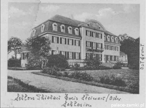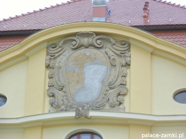 Od strony frontowej rezydencja poprzedzona jest zadaszonym na wysokości pierwszego piętra gankiem. Natomiast w elewacji ogrodowej znajduje się niewielki ryzalit zwieńczony półkolisty tympanonem z herbem rodowym właścicieli i dewizą "Nulla me terrent", czyli "Niczego się nie boję". Całość nakryto dachem mansardowym z lukarnami, a wokół pałacu rozciąga się park krajobrazowy. W czasie wojny w pałacu urządzono lazaret (szpital wojskowy) i ośrodek dla rekonwalescentów armii niemieckiej.