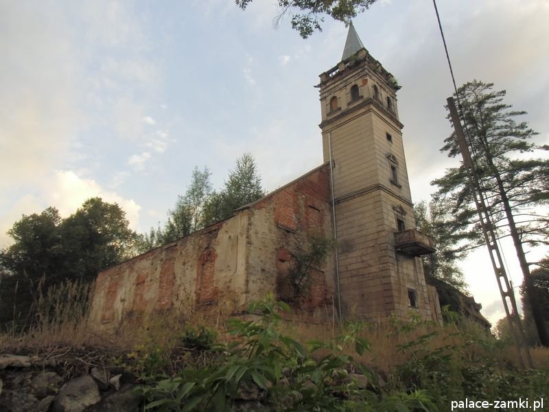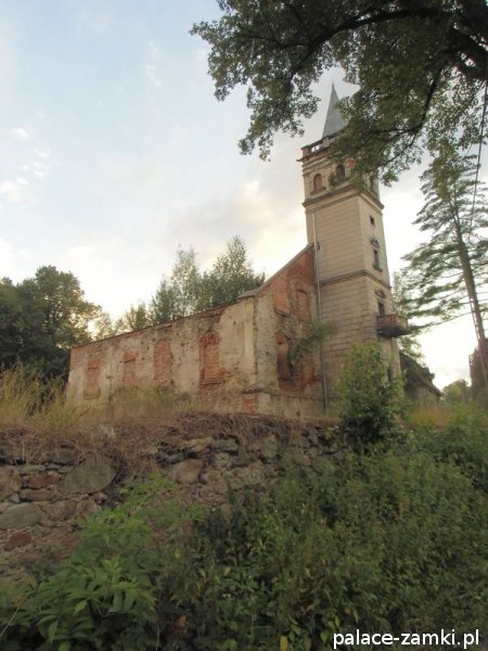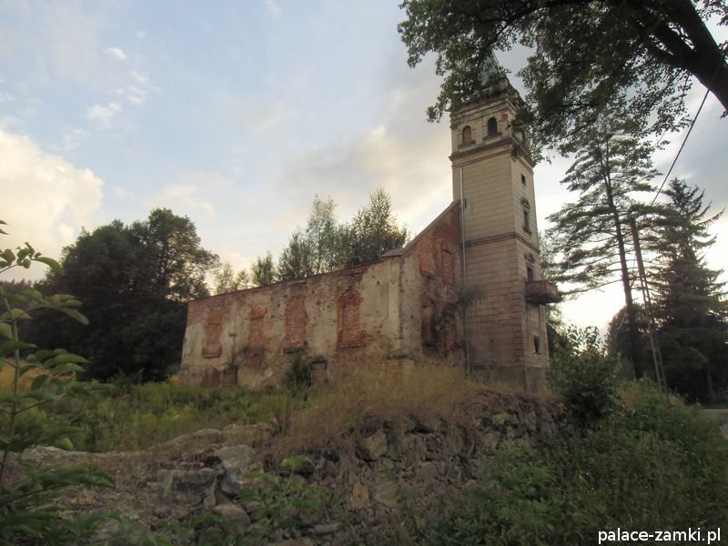 Ruiny pałacu znajdują się w zachodniej części wsi przy drodze do Starej Kamienicy, 11 km na zachód od Jeleniej Góry. Trafiliśmy na nie przypadkiem, jadąc od strony Gryfowa Śląskiego do Starej Kamienicy. Z początku pomyśleliśmy, że to może ruina kościoła, ale gdy się zbliżyliśmy, to nie mieliśmy już żadnej wątpliwości, że to piękny pałac z majestatyczną wieżą, który popada w ruinę bez należytej opieki.