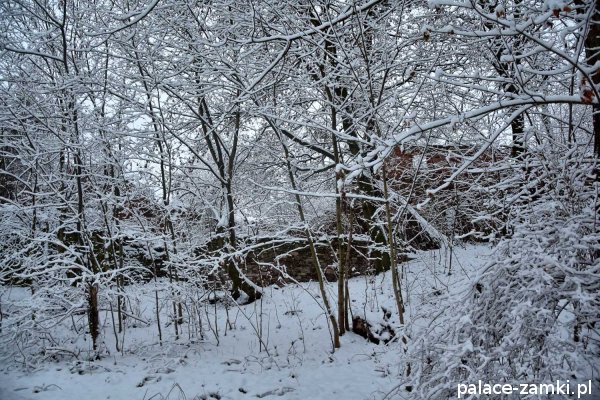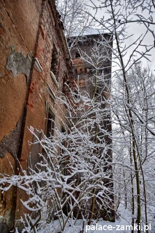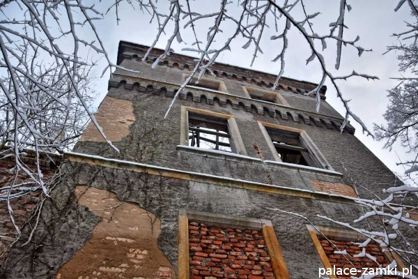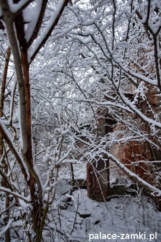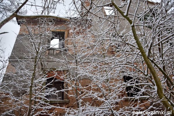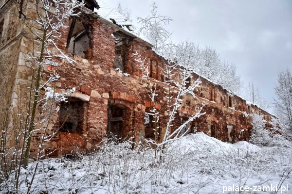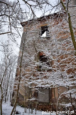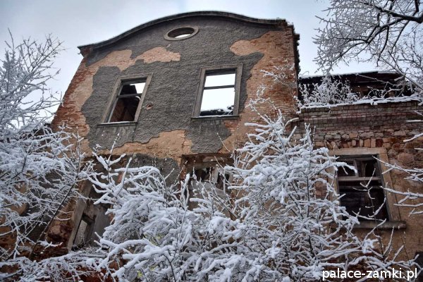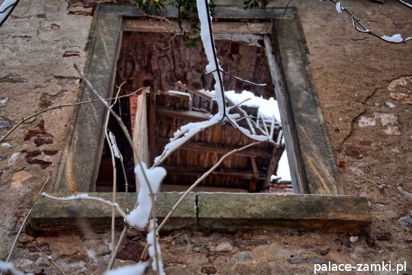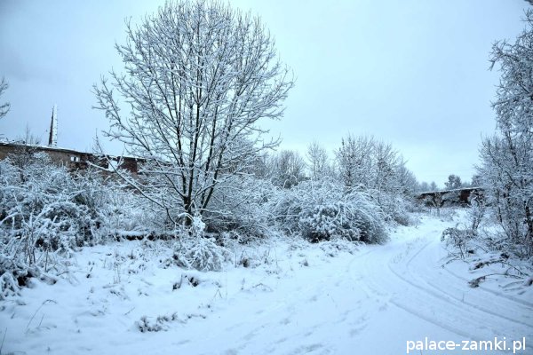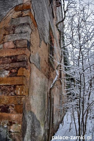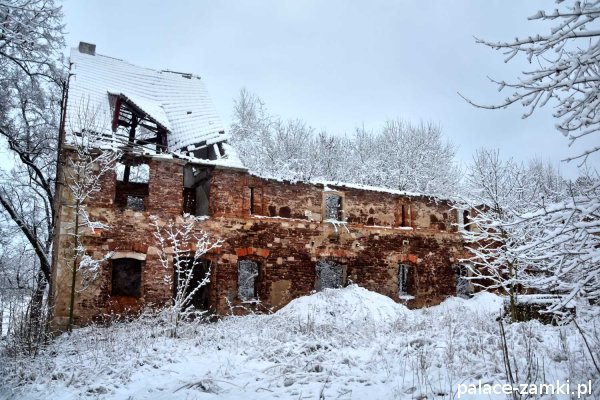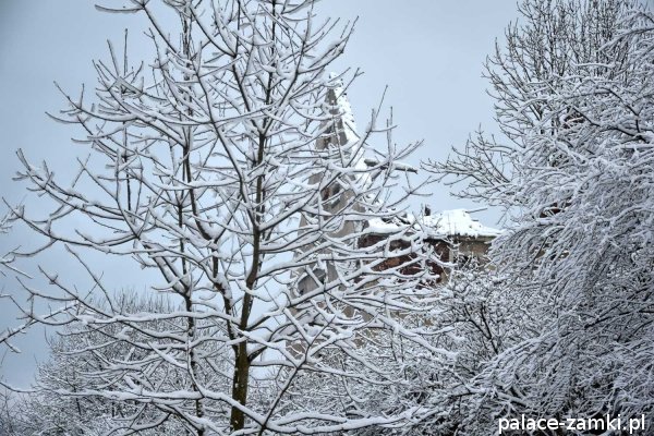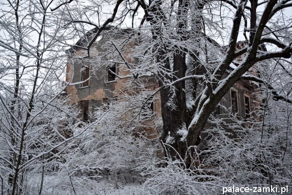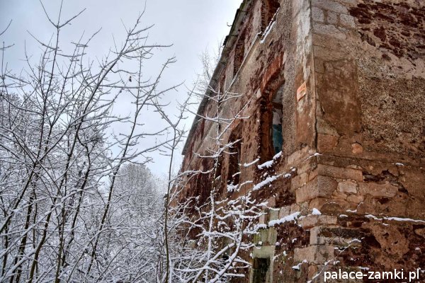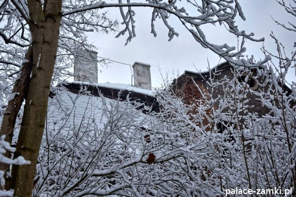 Pałac, mimo, że nie jest jakąś wielką budowlą, to nas w jakiś sposób zachwycił- może to zimowa pora dodała temu miejscu uroku, a może usytuowanie zespołu pałacowego. Budynki pałacu i gospodarcze wybudowano na wzniesieniu- każdy praktycznie na innym poziomie. Pałacowy park znajduje się na najniższym poziomie zespołu, trochę wyżej znajduje się budynek pałacu, wyżej znajduje się oficyna mieszkalna, a jeszcze wyżej i wyżej: budynek gospodarczy, stodoła, obora i spichlerz. Zapewne taki układ gwarantuje osłonę budynku pałacu od wiatrów wiejących od gór, a dzięki temu było w nim cicho i ciepło.