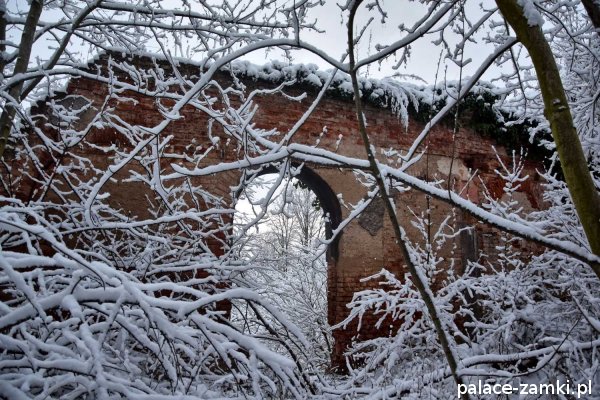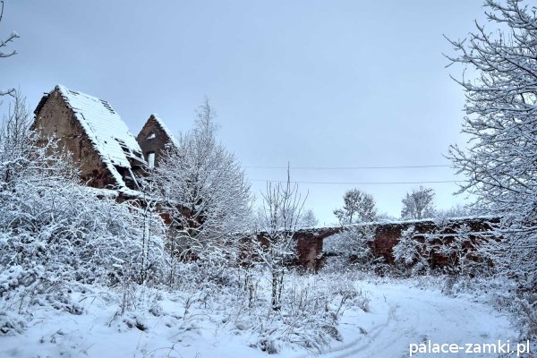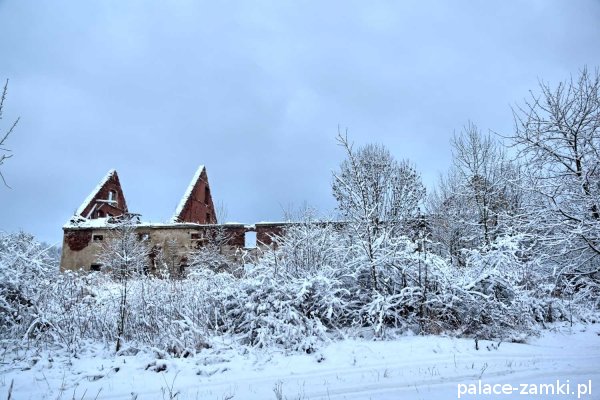 Po drugiej stronie drogi szutrowej biegnącej w kierunku wschodnim, na wzgórzu, znajdują się ruiny mauzoleum właścicieli panujących tu przed wojną. Grobowiec ten został wysadzony w czasie działań wojennych lub krótko po wojnie przez radziecką armię[1].