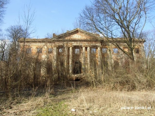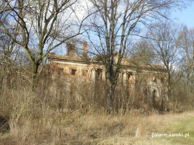 Według historii pałac zbudowano pod koniec XVIII wieku dla Ernesta Wolfganga von Tothkircha und Tracha. Ta rozległa budowla została wzniesiona w stylu klasycystycznym. Według danych archiwalnych pałac został podpalony w czasie działań wojennych. Podczas pożaru runął dach, a następnie drugie piętro. Kolejnych zniszczeń dokonali wandale, czynniki atmosferyczne oraz czas.
