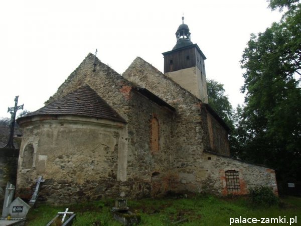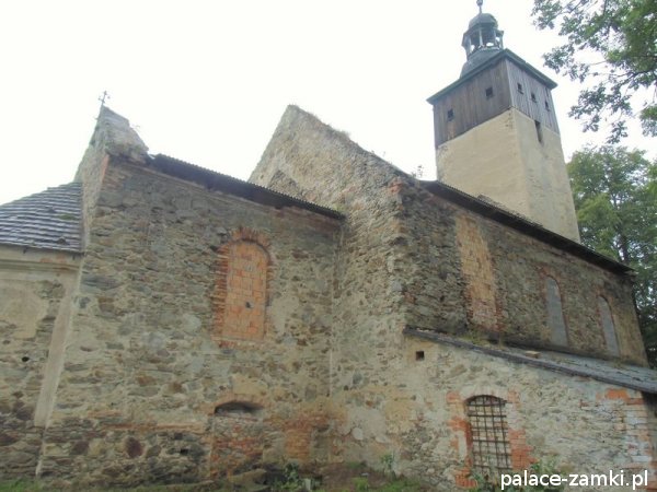 Poszukując pałacu w Kościelnikach Średnich oczywiście nie mogliśmy powstrzymać się od zrobienia kilku zdjęć dostrzeżonych w tej miejscowości ruin kościoła Najświętszej Maryi Panny. Kościół znajduje się tuż obok pałacu, a dookoła niego znajduje się stary cemntarz.