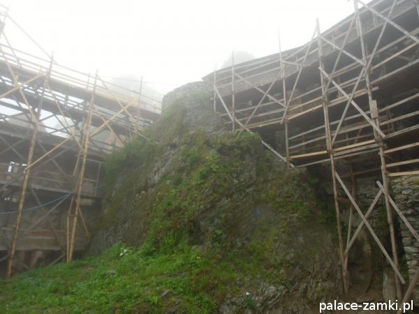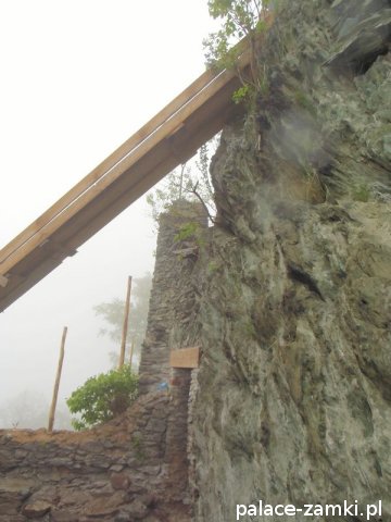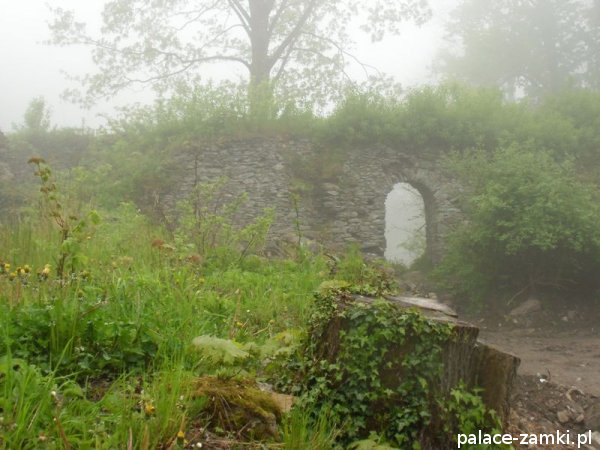 Najstarszym elementem zamku jest murowana wieża mieszkalna– donżon, wznosząca się na skalistym wierzchołku góry oraz towarzysząca jej zabudowa. Od strony zachodniej i północno-zachodniej donżon ściśle otoczony jest murem obwodowym,