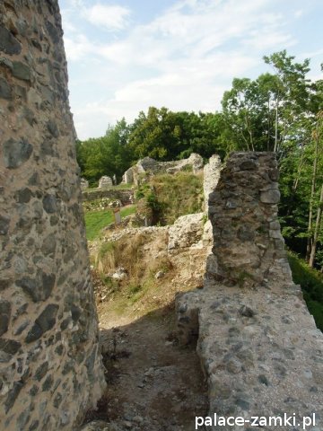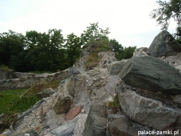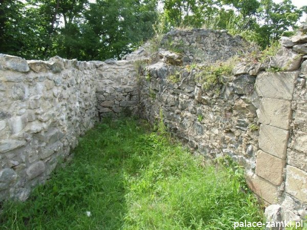 -Około 1163 r. za panowania księcia śląskiego Bolesława I Wysokiego, pojawiły się pierwsze elementy kamienne. W tym sześcioboczna wieża, kaplica, część mieszkalna oraz mur obwodowy.