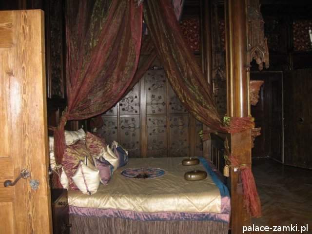 Na zamku możemy wykupić także nocleg w najbardziej charakterystycznej Komnacie Książęcej z wielkim łożem z baldachimem oraz zapadnią dla kochanek księcia i oryginalną łazienką.