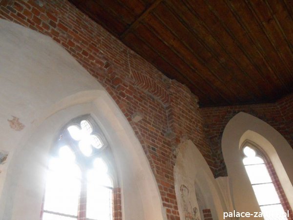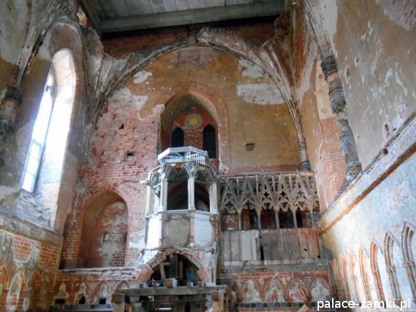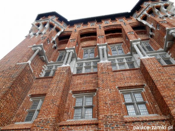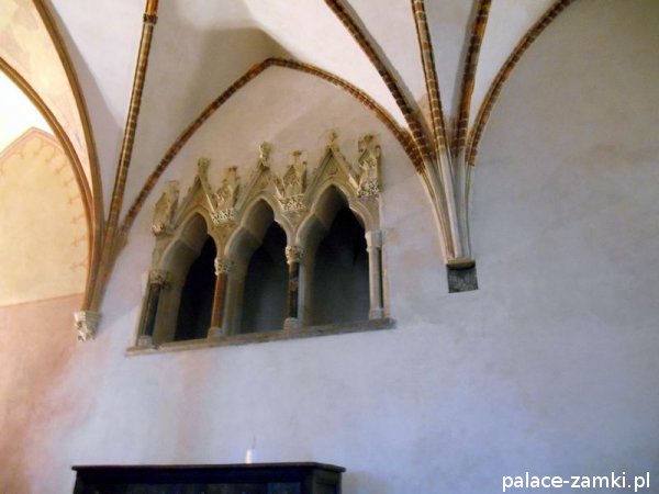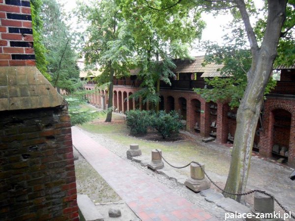 Zamek Wysoki, czworoboczny, z dziedzińcem otoczonym krużgankiem, kościołem Najświętszej Maryi Panny z kaplicą grobową świętej Anny, wieżami Kleszą i Wróblą