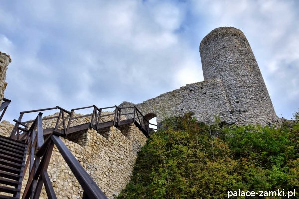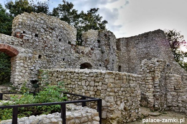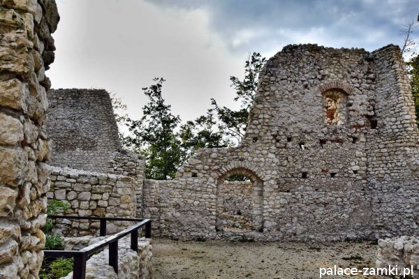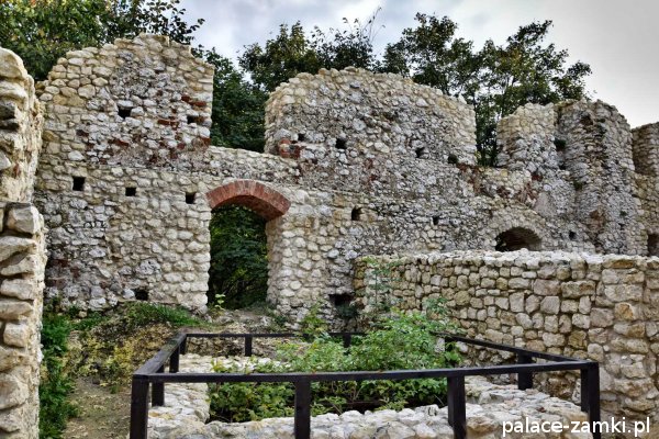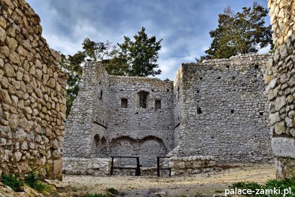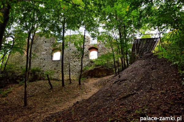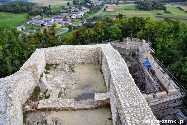 Przed wiekami do wieży przylegał kilkukondygnacyjny dom mieszkalny. Do podnóża wieży możemy dziś bardzo prosto dotrzeć dzięki nowym, drewnianym schodom, które zainstalowano wzdłuż muru. Na samą wieżę, z której możemy podziwiać panoramę okolicy, wejdziemy dzięki nowej klatce schodowej zbudowanej z metalowej konstrukcji i krat pomostowych. Podzamcze zachodnie powstało w wieku XVI i pełniło jedynie funkcje mieszkalne. Świadczą o tym pozostałości kilku okien, strzelnicy, oraz wewnętrznego podziału na komnaty. W jego murach znajdują się również ślady południowej bramy zamku. W południowym narożniku dziedzińca znajduje się studnia zamkowa.